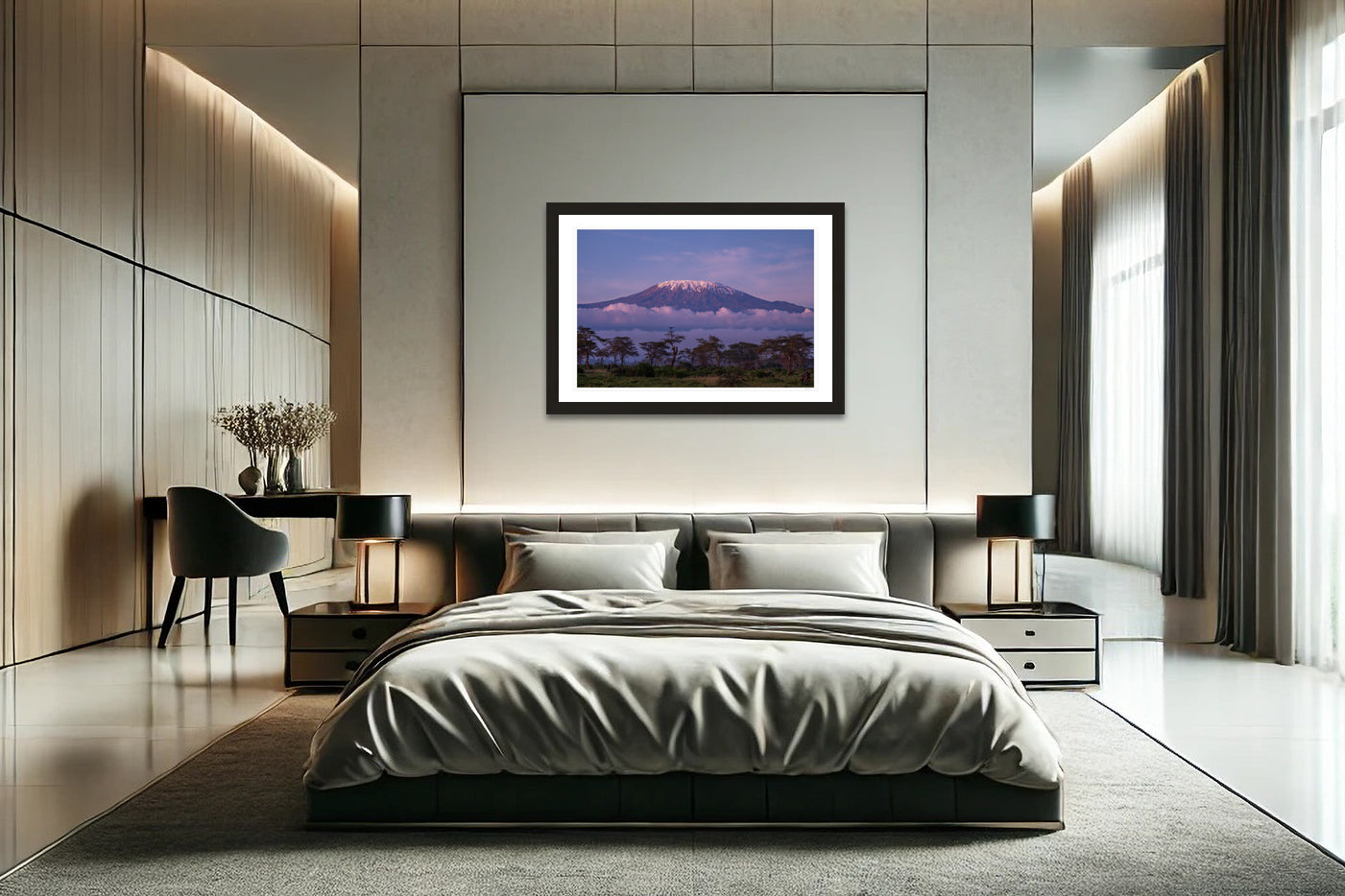 The Shy Mountain captures the rare moment when Mount Kilimanjaro reveals its snow-capped summit, rising above a veil of clouds and the acacia-studded plains. This fine art landscape photograph embodies the mountain’s mystique, a place so often hidden from view that its appearance feels like a gift.