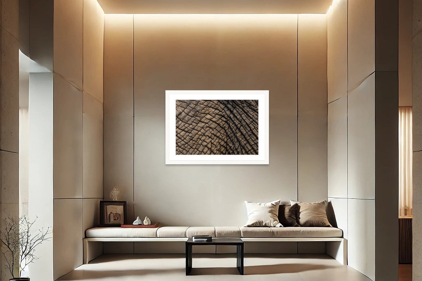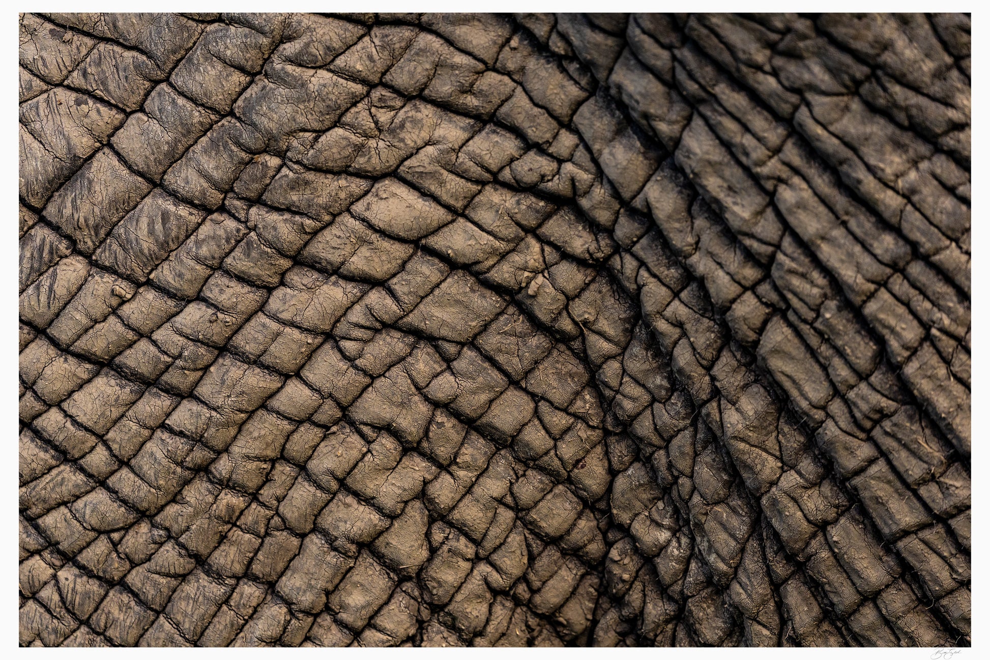 Topography of Time reveals the intricate texture of elephant skin, a natural map etched by age, resilience and the wild landscapes these giants call home. Every line and crease tells a story, decades of survival, migration and the unbroken bond between elephants their environment and one another. The close-up composition transforms the skin into an abstract landscape, resembling weathered earth or ancient stone.