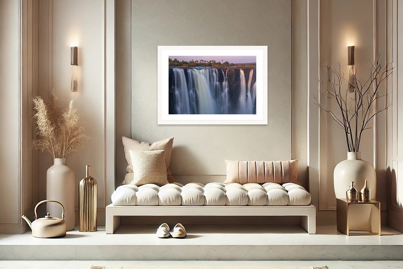 This fine art photograph pays homage to Mosi-oa-Tunya, “The Smoke That Thunders,” a place where power and serenity exist in harmony. From the palm trees crowning the horizon to the sheer drop of the gorge below, the scene evokes a feeling deep within, reminding viewers of the scale and beauty of Africa’s landscapes. Ideal for anyone looking to bring the grandeur of one of Earth’s most iconic landmarks into their space.