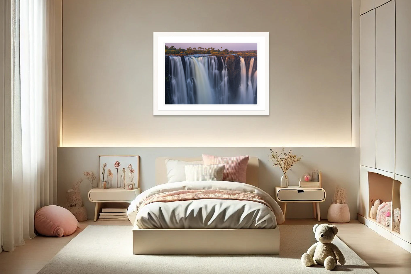 Veil of Victoria captures the majesty of Victoria Falls, one of the Seven Natural Wonders of the World and a UNESCO World Heritage Site. Taken at the edge of day, the image reveals water cascading in silken ribbons over the cliffs, glowing softly in hues of lavender. The long exposure transforms the roaring Zambezi River into an ethereal veil, blending motion and stillness in a breathtaking display of nature’s artistry.